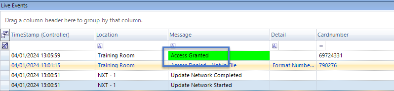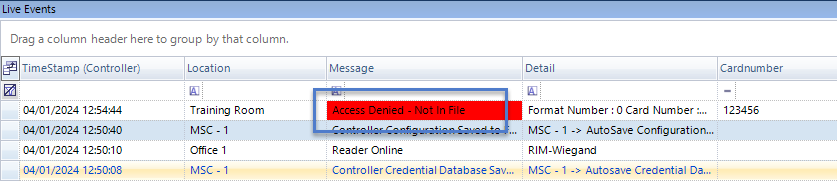- If the credential does not exist in the database you will see an access denied event in live events.