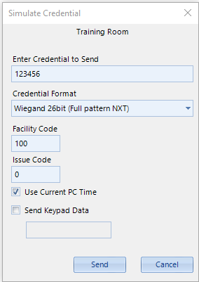 - Send Keypad Data - Check this option if you wish to simulate entering a PIN rather than a credential.