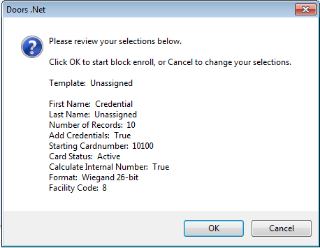 Block Enrollment allows an Operator to create a generic set of credentials (using consecutive credential numbers) that can be, in turn, issued on an as-needed basis.