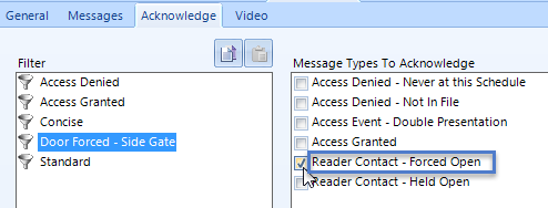 - A filter now needs to be setup and then assigned to the reader. This is so the specific event type can be defined and set for acknowledgment - the event will then be treated as an alert.
