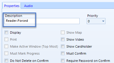 - Reader Forced is an Alarm event, so you will need to select the required sound from the Alarm Sound drop-down list. The sounds that display in the list are .WAV files that are stored in the following directory of a default installation: C:\Keri\DoorsNET\Sounds.