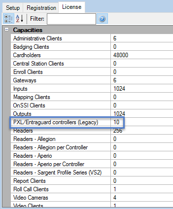 Legacy controllers require a PXL Legacy Count to be set on the license key to enable the controllers to work with Doors.NET. By default this value is set to zero. Typically Legacy controllers are carrying over from an existing Doors32 installation that is being upgraded to Doors.NET. There is a per-controller fee for licensing Legacy controllers. This applies to both PXL and Entraguard controllers.