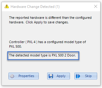 - If the PXL controller existed in the database as a 1-door controller you will see the following message once it is back online.