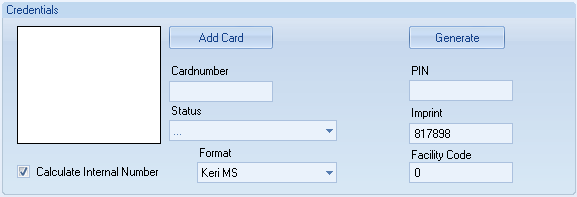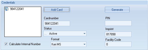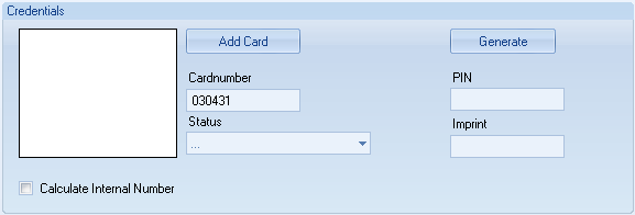 Click the Add Card button. The Cardnumber is automatically calculated and the credential is now entered into the database.