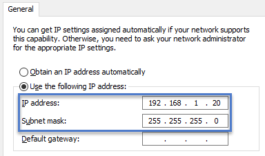 - Verify that Use the following IP address is selected.