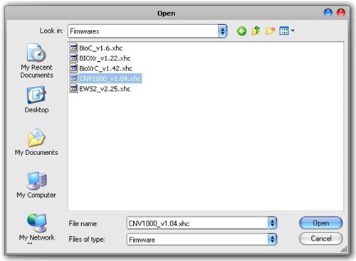 - Select the firmware file with a "xhc" extension.