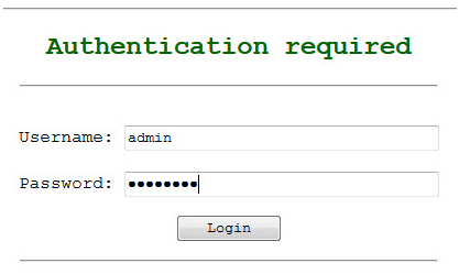 - Default user name = admin