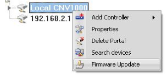 - Right-click the portal to be updated and select the Firmware Update option.