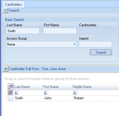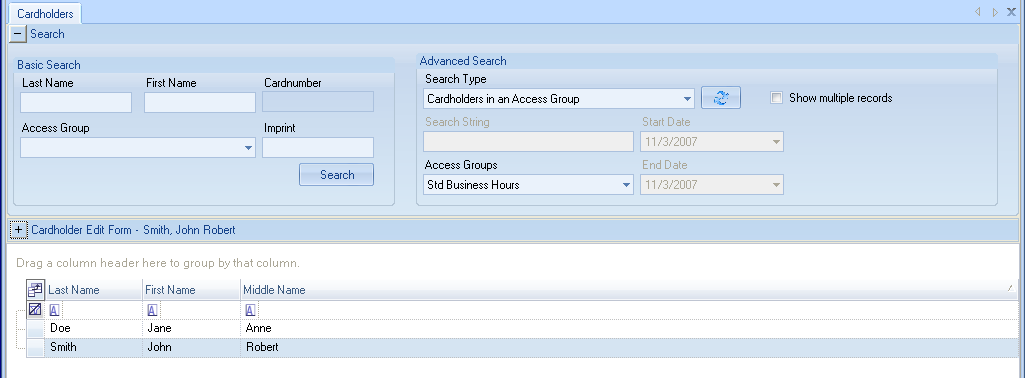Basic Searches are done by entering some type of cardholder information into one of the search fields. The search returns a list of cardholders that match that information.