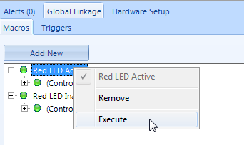 - You will now have two Macros defined in the list. The first one to Activate the output, the second will De-activate it. At this point you can test the functionality of each by right-clicking and selecting Execute.