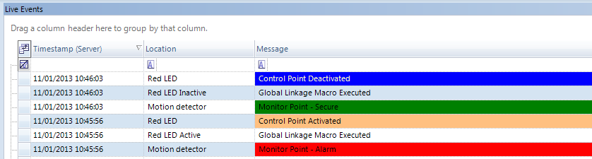 - As well as the physical relay changing state on controller 2 you should also see associated Live Events indicating what is happening.
