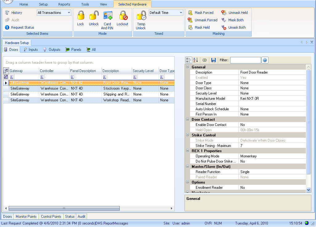 - Manufacturer Model - the manufacturer and model type of the reader controlling that door