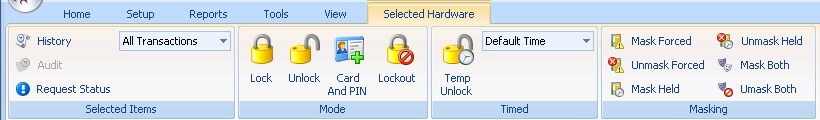 - Mask/Unmask Both - mask/unmask both door forced and door held open events from being posted to the event buffer