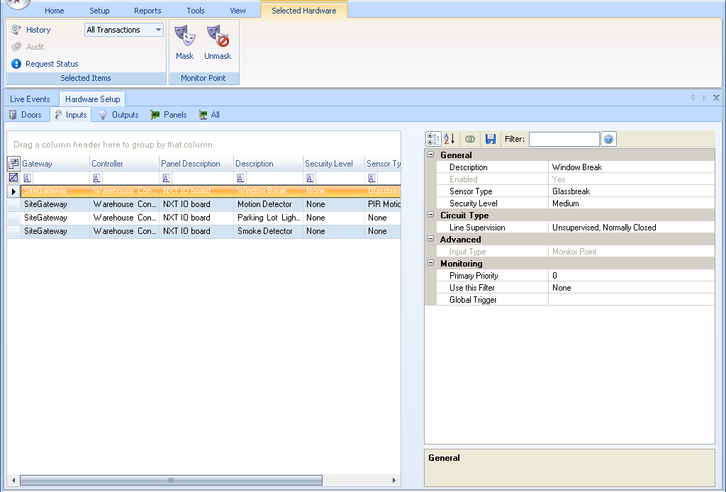 - Sensor Type - the physical type of sensor wired to that input: i.e., door, glass break, PIR, tamper, etc.