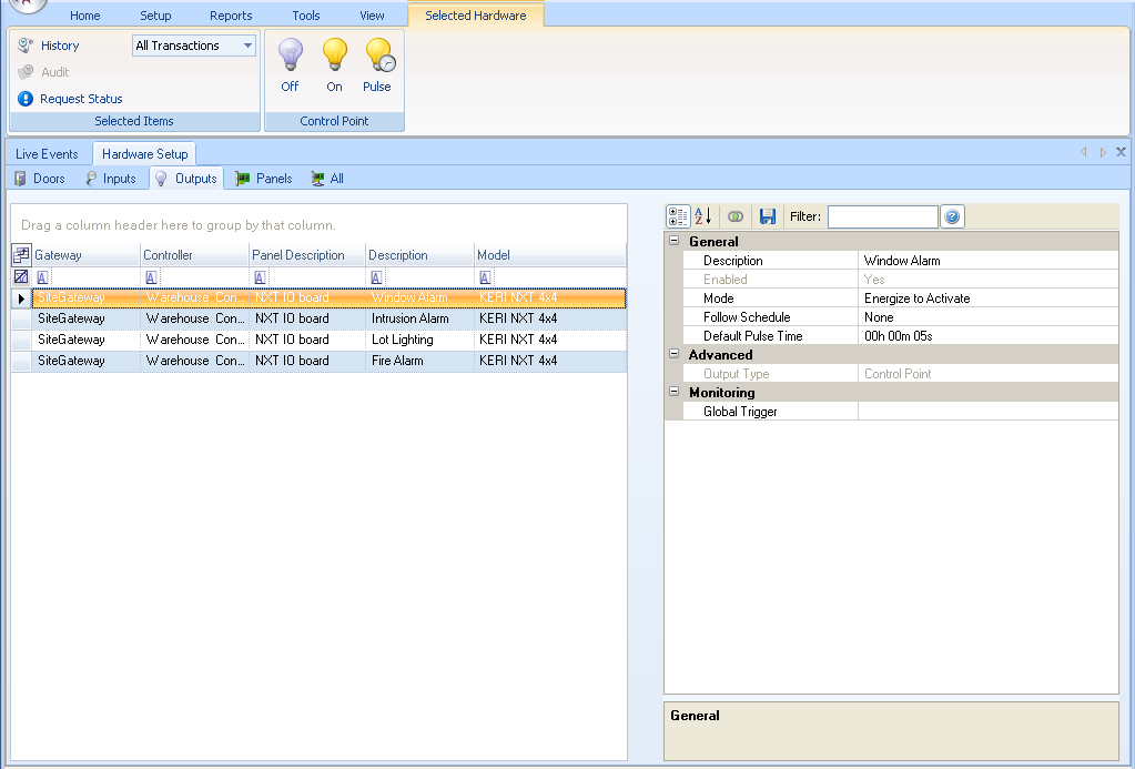- Default Pulse Time - the amount of time an output pulsed when active; up to a maximum of 18 hours, 12 minutes, 15 seconds