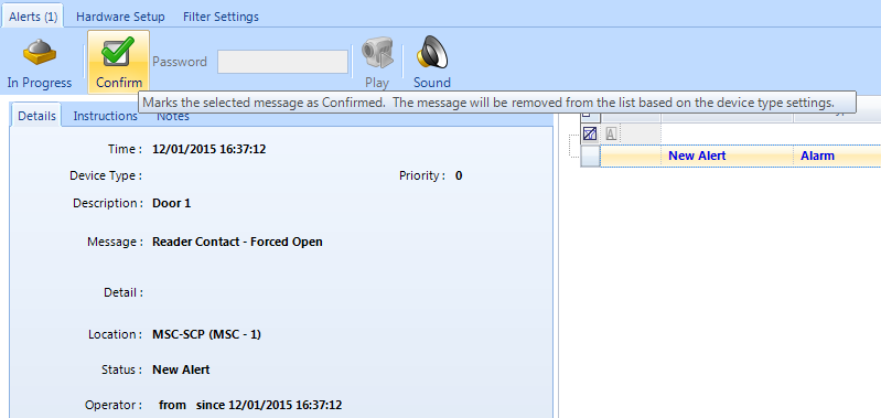 - Highlight the alert so it can be confirmed.