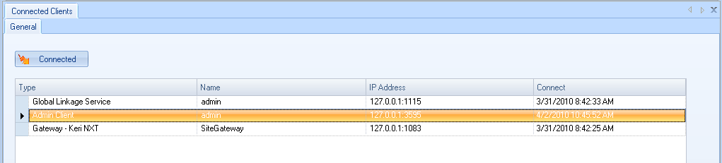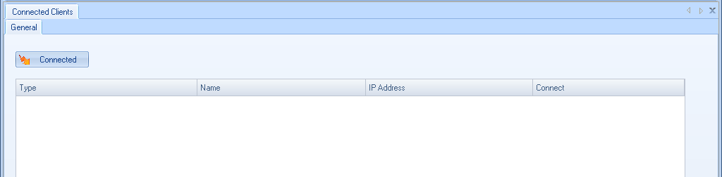 - Click the Connected Button and information for all clients connected to the server is displayed.