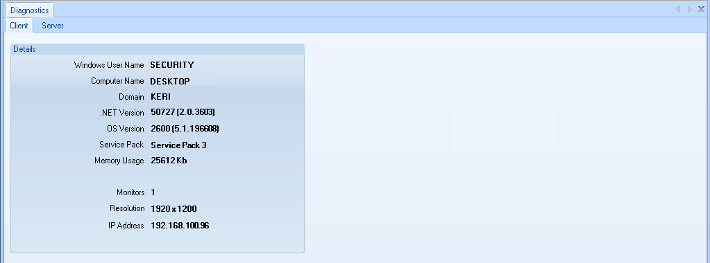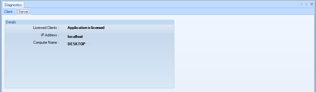 in the Diagnostics icon group and Diagnostics tabs appear for the Client and the Server.